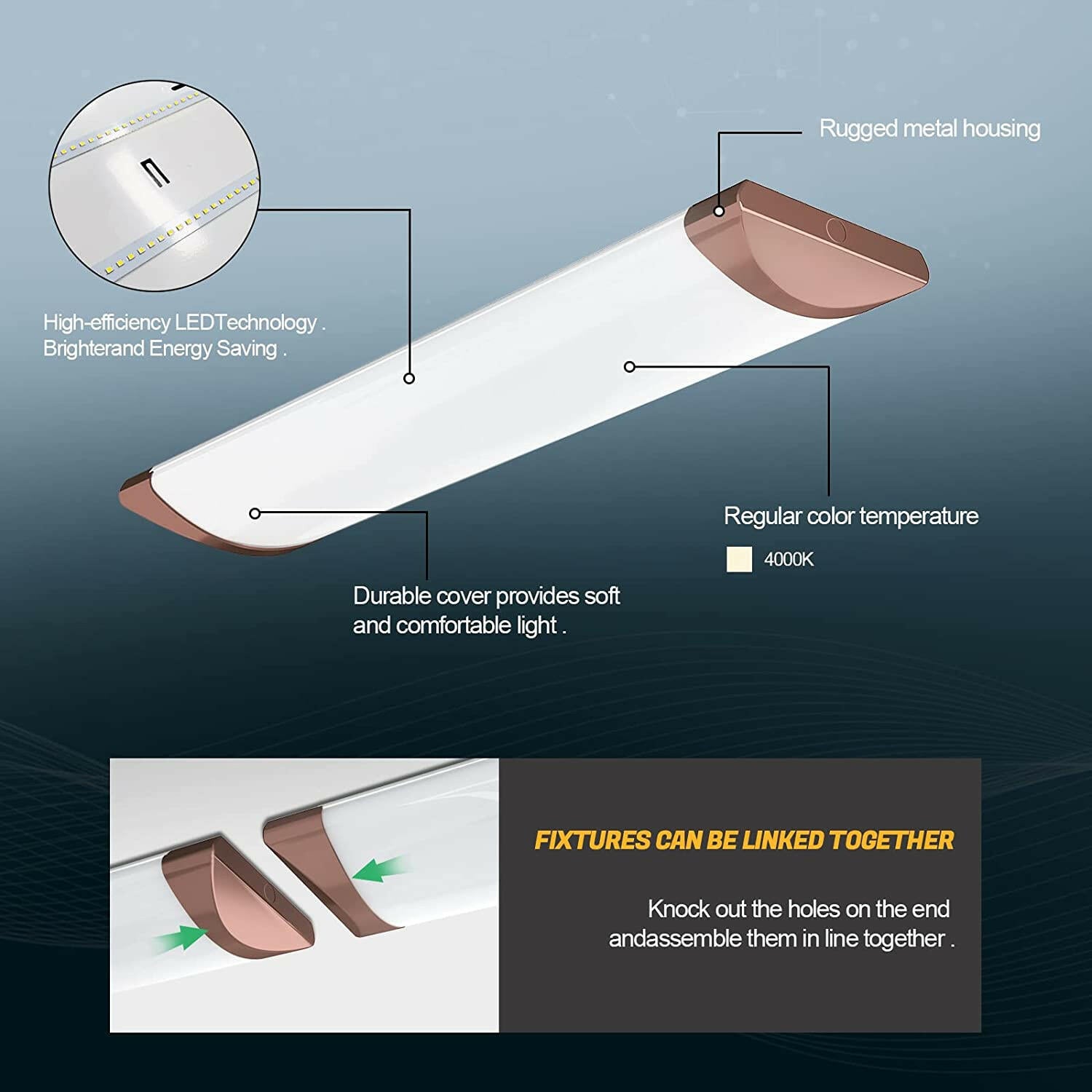 EASY AND FAST INSTALLATION - Attach fixture to ceiling, connect wire correctly. This diffuser of 2 ft led shop light uses unique pressure assembly cover structure, which is very easy for customer to assemble and disassemble. If you want to link multiple lights together, just knock out the holes on the end, and use connect wires to link up together.