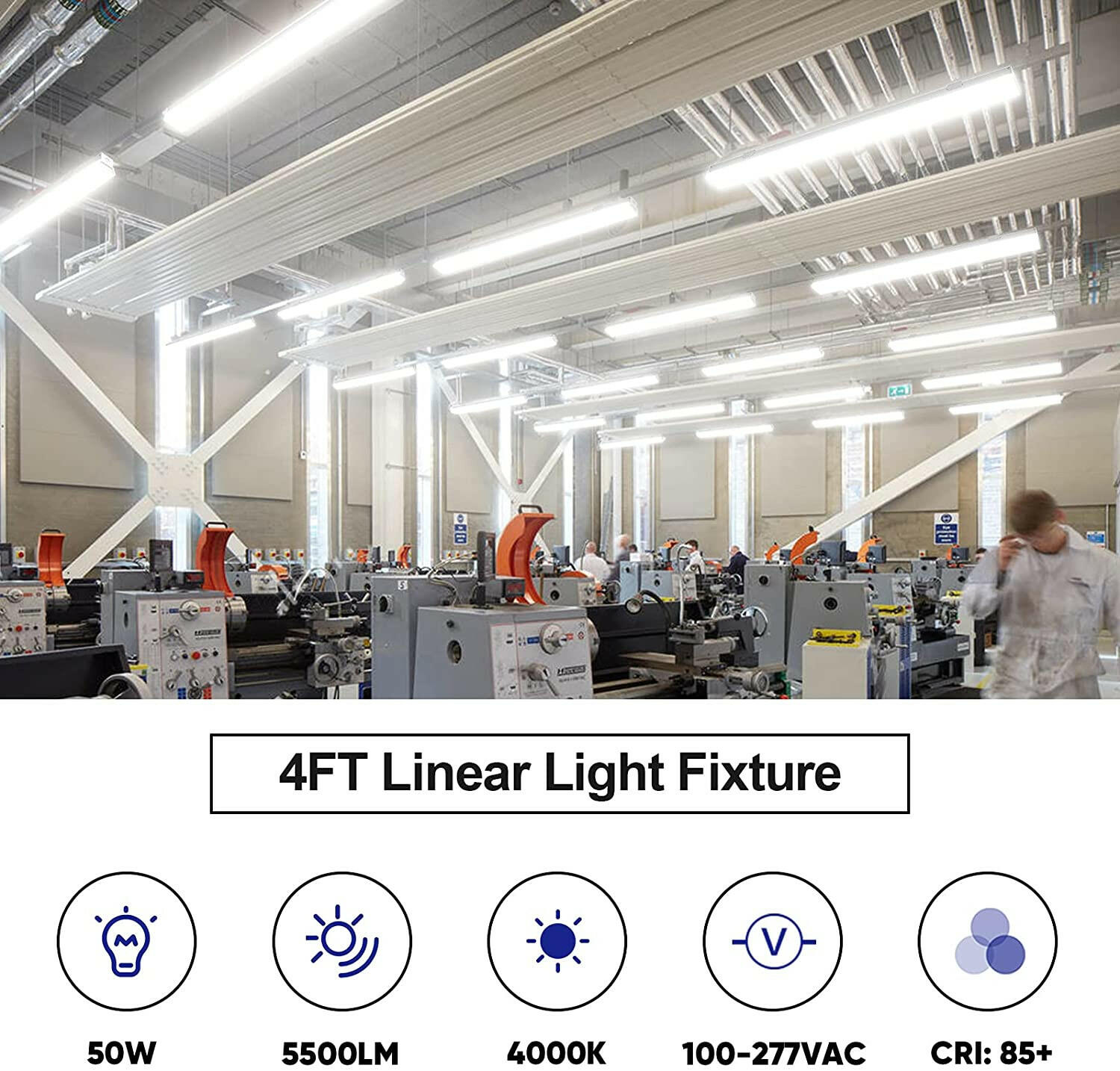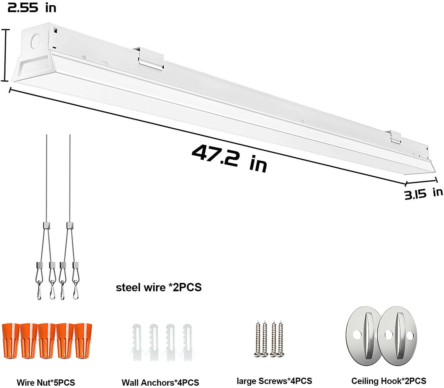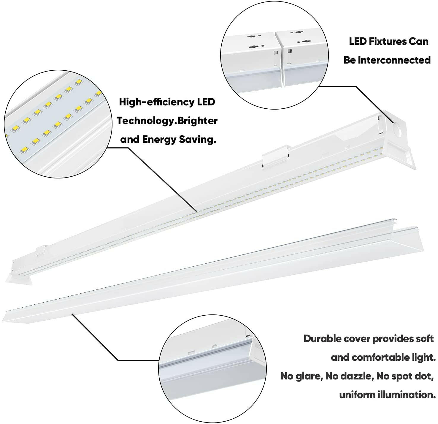 DURABLE FIXTURE - These 4ft garage LED lighting fixtures included led strips inside each fixture. No extra lighting source needed. Rugged aluminum used with excellent heat dissipation. Protect LED chips and driver to ensure long lifespan and stable performance.