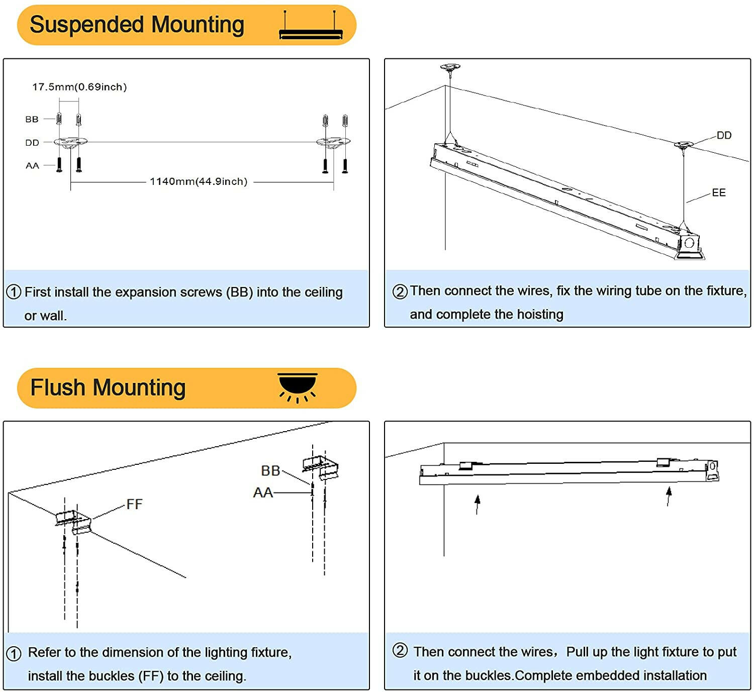 LINKABLE AND EASY TO INSTALL – You can assemble these linkable led strip lights in line together. Both suspended and surface mount are available, includes all necessary mounting hardware. Very easy and fast installation to save your time and money.