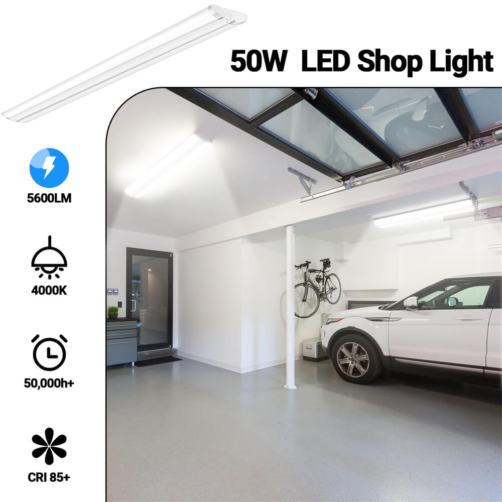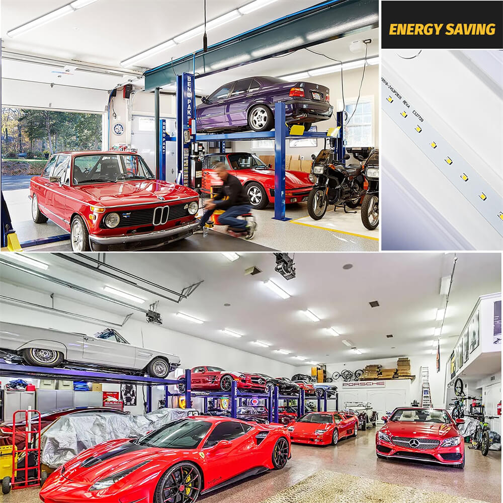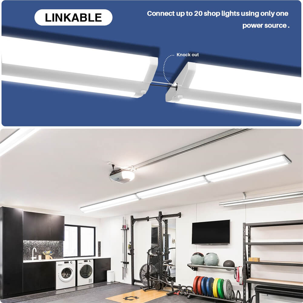Super Bright & Over 75% Energy Saving - The commercial grade 4ft led shop lights provides 5600 lumens output at 50W with high efficiency. These are much brighter than old fluorescent fixtures and great option to replace traditional fluorescent tube lights or incandescent fixtures. The light output is tremendous and can make a huge difference in how your garage or shop looks and feels. It will reduce over 75% electric bill.