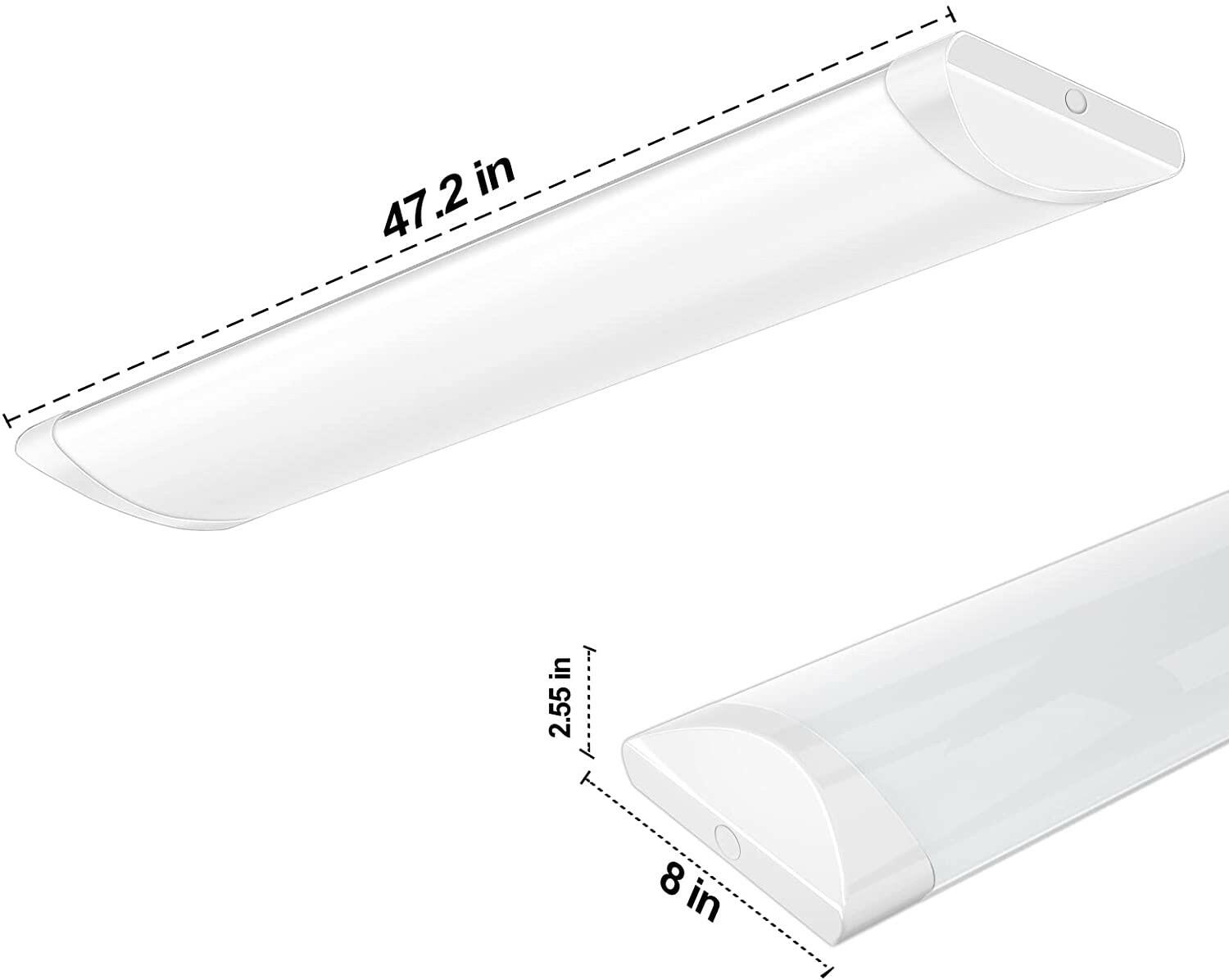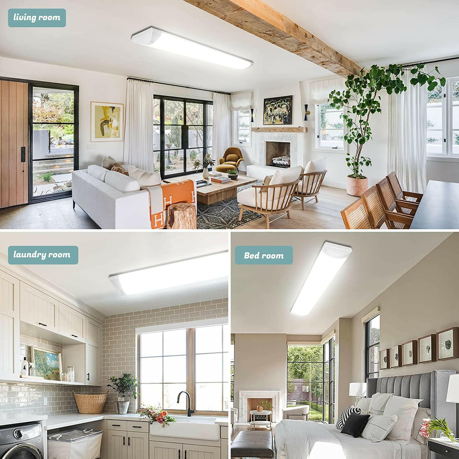 Elegant & Unique Design: The unique decorative end caps design of this 48 inch LED light fixture makes your space more elegant. Featured with the thermal-formed diffuser, the 4ft led kitchen ceiling lights provide soft and comfortable lighting, resulting in a light source without glare, dazzle, or spot dot, protecting your eyes.