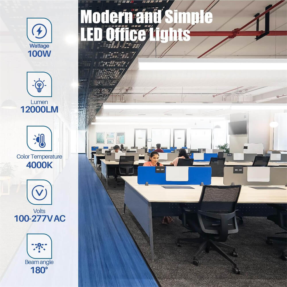 VERY BRIGHT & OVER 75% ENERGY SAVING - The 4ft LED ceiling lights provides 12000 lumens output at 100W with high efficiency, which is great option to replace traditional T8 fluorescent tube light or other less-efficiency traditional lights. Reduce over 75% electric bill with 50,000 hours of maintenance-free operation.