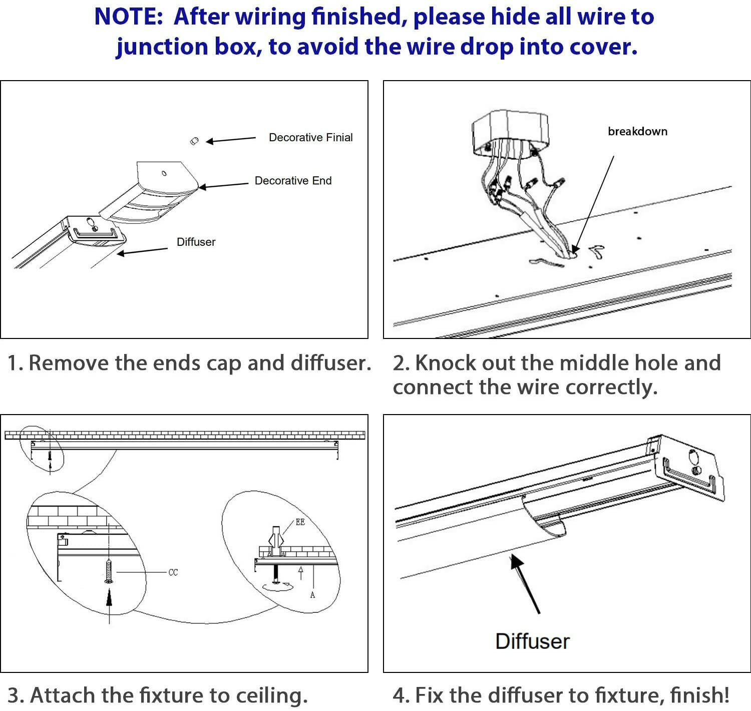 HASSLE-FREE INSTALLATION - Attach fixture to ceiling, and connect wire correctly. Come with the user manual and mounting hardware for fast and easy installation. Antlux 4 ft LED light is the best choice for kitchens, laundry rooms, closets, living rooms, attics, bedrooms, foyers, offices, basements, storage rooms, garages, and hallways.