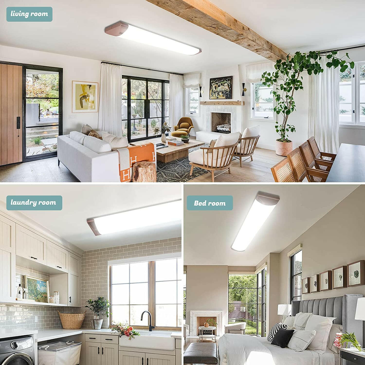 EXQUISITE AND UNIQUE DESIGN: The 4ft kitchen led ceiling lights made with bronze decorative end caps, which offer a stylish and clean look that will create a perfect balance of contemporary design and elegant. The thermal formed diffuser provides soft and comfortable lighting with high transmittance. No dazzle, no spot dot, no flickering.
