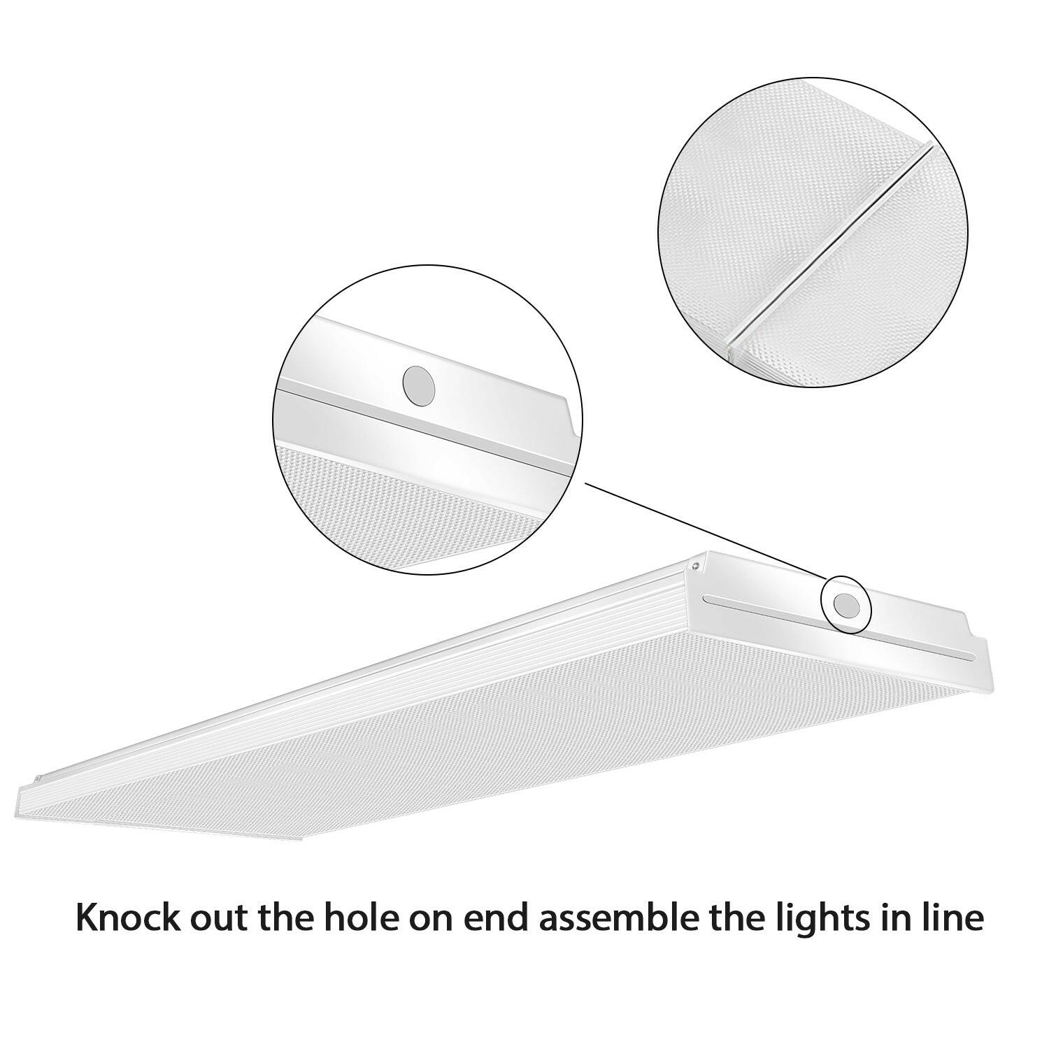LINKABLE - Knockouts on ends and assemble the lights in line together (up to 10). Easy set up with these 4ft flush mount led ceiling lights. Just attach it to your wall or ceiling, connect the wiring as instructed with included mounting hardware.