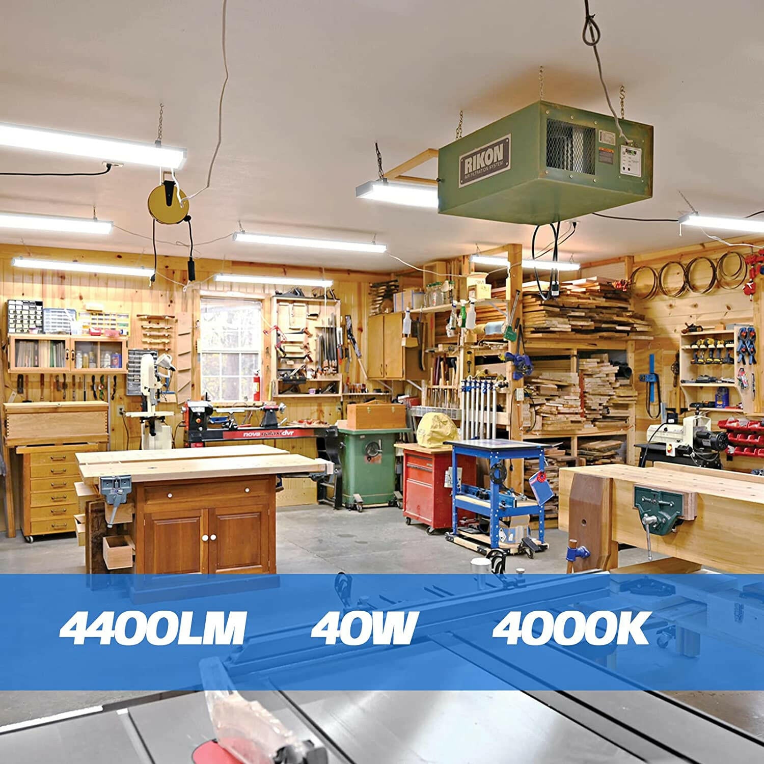 WIDE APPLICATION - Our 4 foot led shop lights are perfect for garages, kitchens, walk in closets, laundries, workshops, craft rooms, hallways, basements, workshops, workbenches, utility rooms, storage rooms, barn, equipment rooms, auto shops and replacing fluorescent versions.