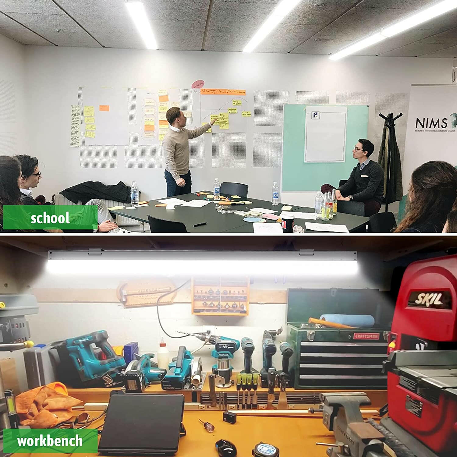 Energy-efficient LED technology lowers energy usage and cost. Emits over 5500 Lumens for 4 foot led garage lights.