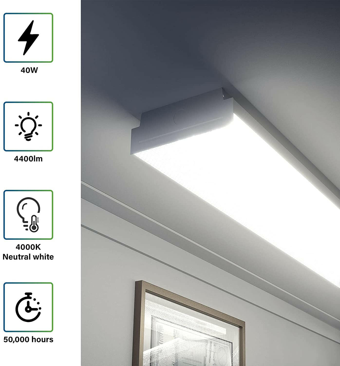 LONG LIFESPAN AND RELIABLE - This 4ft LED ceiling lights fixtures can last 23 years (6 hrs per day). If you need any support, please email us, our professional after-sales team will solve your problem timely and provide you 100% satisfaction solution.