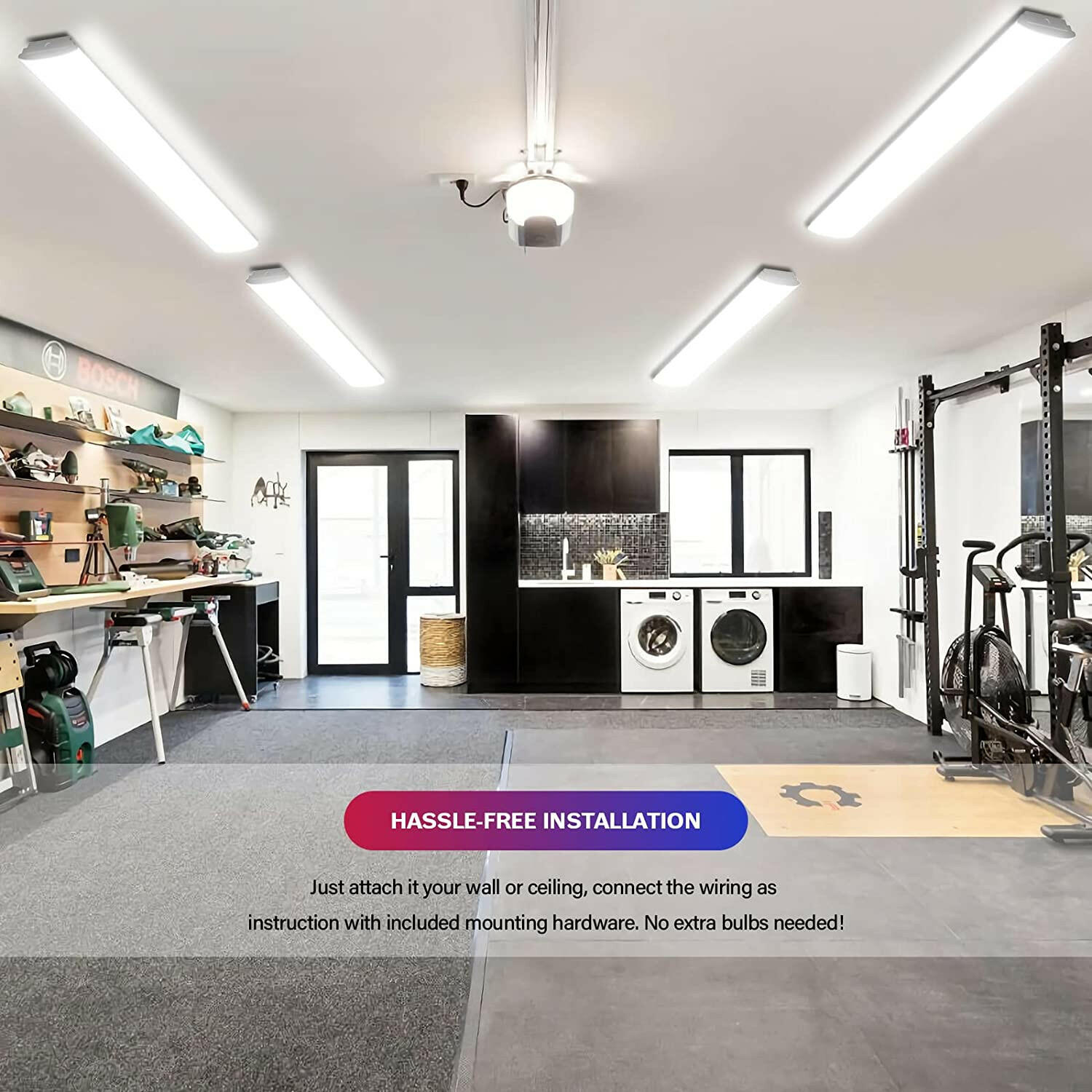 WIDE APPLICATION - Our 4 foot LED strip light fixture is perfect for offices, garages, basements, workshops, workbenches, utility rooms, storage rooms, barns, equipment rooms, auto shops, and replacing fluorescent versions.