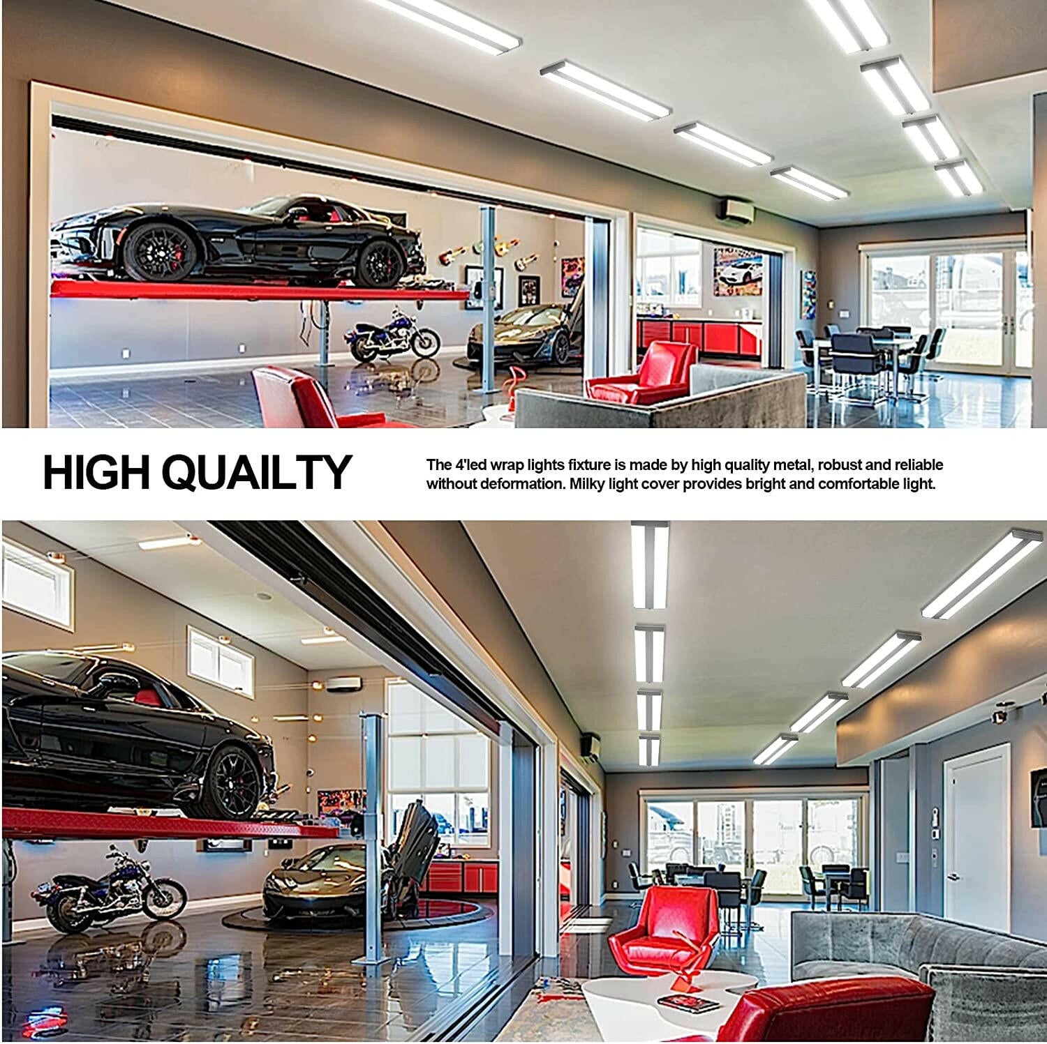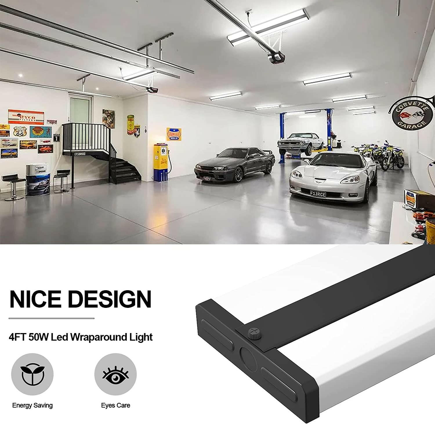AntLux's 48 in led wraparound light fixtures provide high performance and energy saving for you. Our 4 ft led shop light for garage, 180° shining from 2 sides, providing enough bright, soft and comfortable lighting for your room. Upgrade version LED wrap light not only on novel look but also longspan, more than 50,000 hours, which is the best replacement for fluorescent tube.