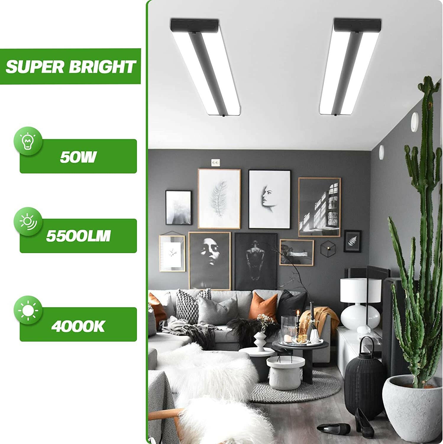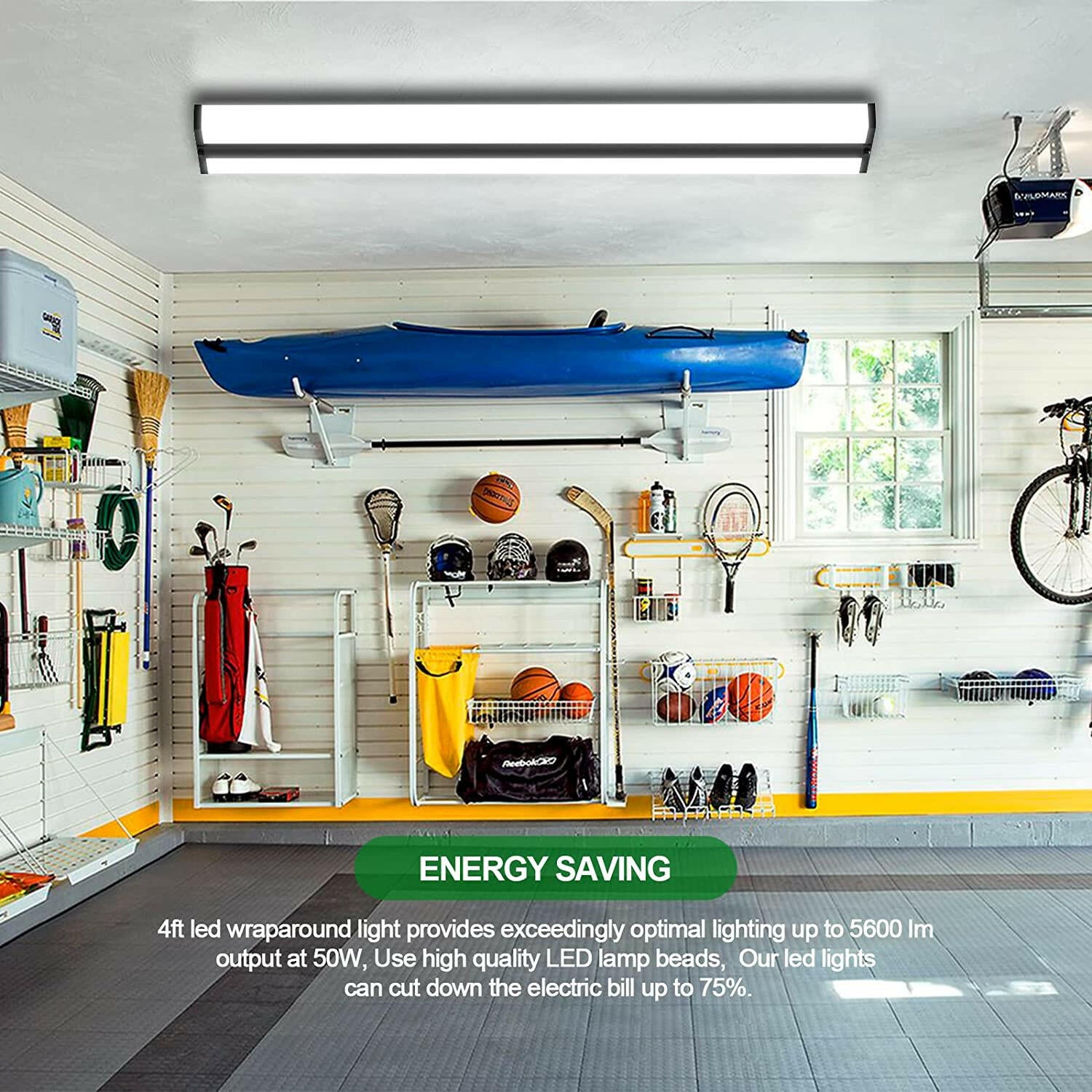 ENERGY SAVING: AntLux high-performance 4 foot LED lighting for garage work at 50 watt, 5500lm, (150W Traditional fluorescent equivalent), Kelvin 4000, which is the best replacement for less-efficient fluorescent light, energy saving more than 75%, cut down the cost of electric bill.