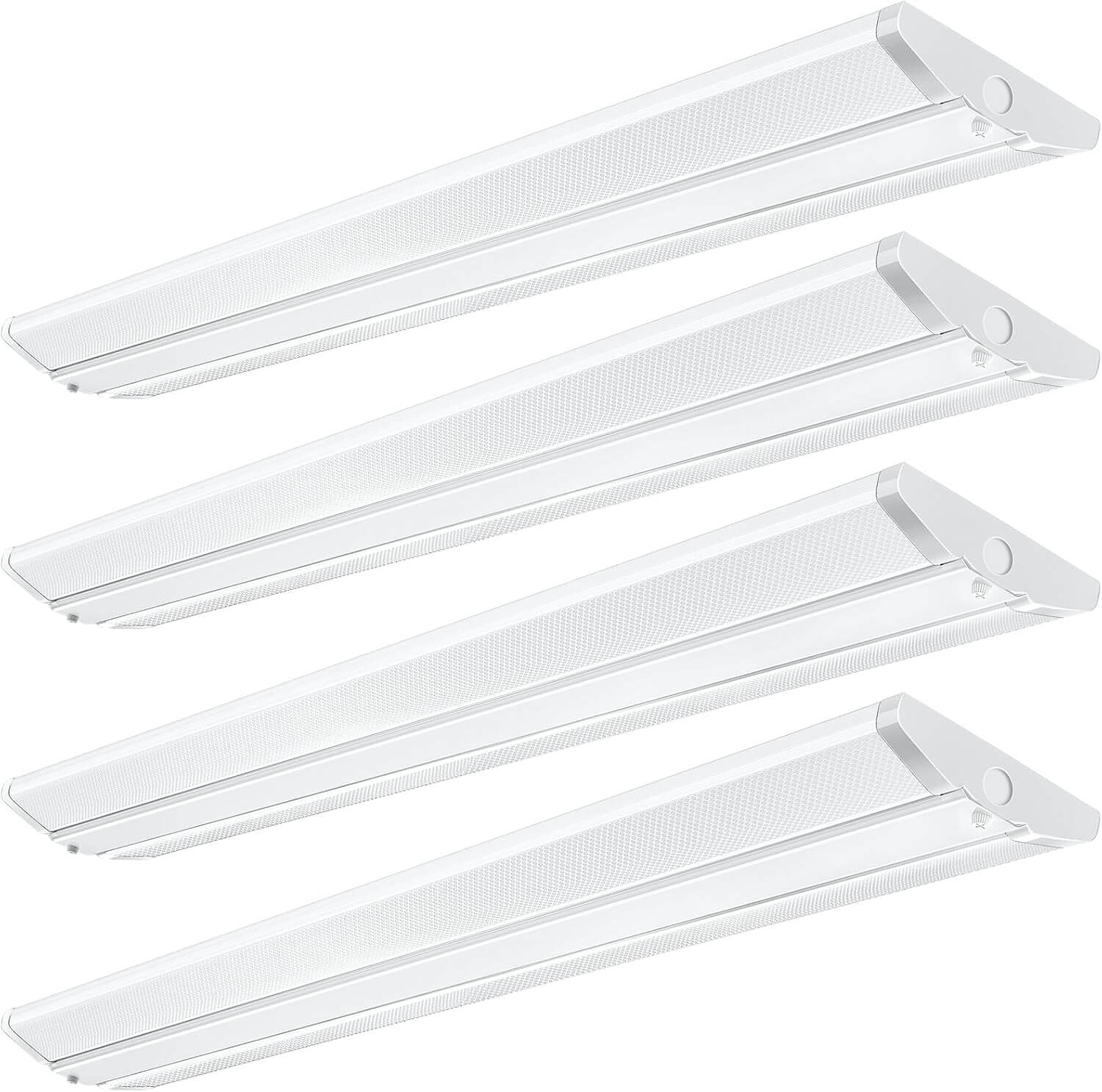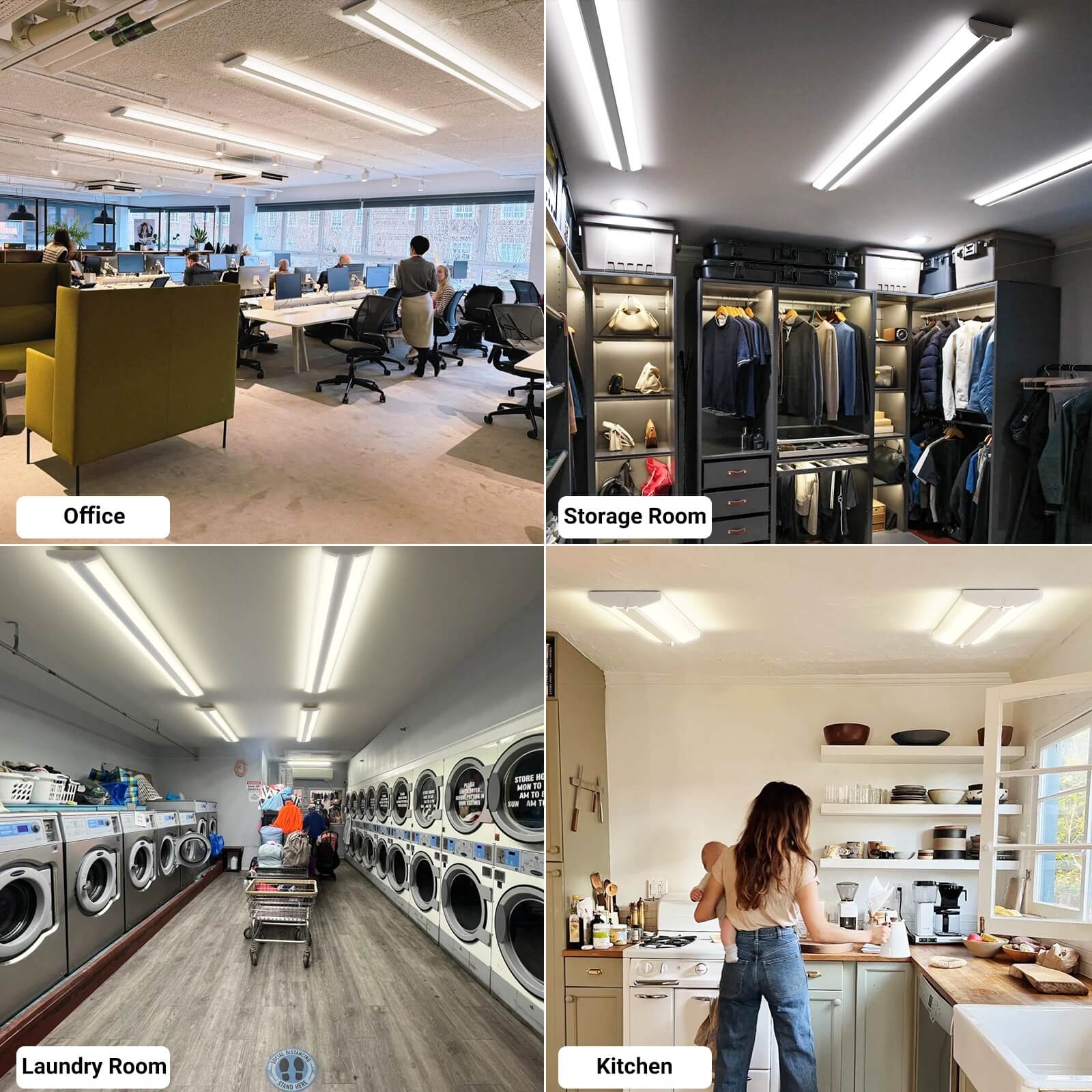 Wide Application: With lightweight and compact design, these 4ft led ceiling lights are ideal for both commercial and residential buildings for wide or narrow spaces. They can be widely used for garage, kitchen, shop, office, laundry, workbench, workshop, closet, carport, gym, storage room, attic, barn, pantry, shed, patio warehouse, basement, utility room, equipment room, cellar, church, play room, hallway, other work area and replacing old fluorescent versions.