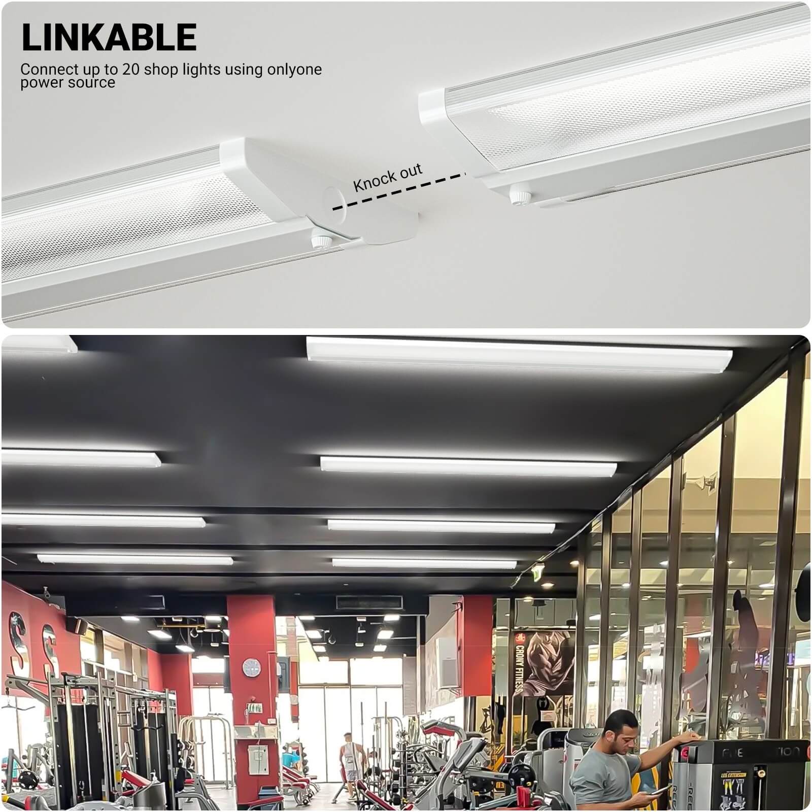 4FT Ceiling Lights with Linkable Design: Linkable design can make it easy to install individually or continuously. You can link multiple lights (up to 20 lights) one by one in line together. Easy set up with these 4ft led garage lights. Just attach it your wall or ceiling, connect the wiring as instructed with included mounting hardware, besides you do not have to take any lenses off to install these fixtures. They are a snap to assemble and disassemble.