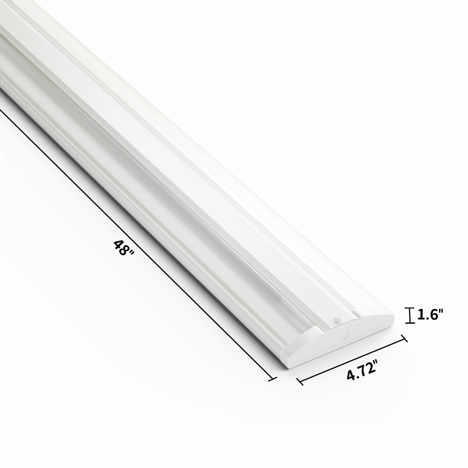 Sleek & Ultra Slim Patent Design: The slim profile make it looks so fantastic and sleek. The ultra thin and prismatic diffuser design can matches most styles of interior furnishing and provide an energetic, cleaning lighting to your place. The 4ft led light fixtures have light angled from both sides, which can light up an area better with 180 degree. The center moulding can hides any excess wiring from casting shadows for best aesthetics, so you do not see the wiring shadow when lights are on.