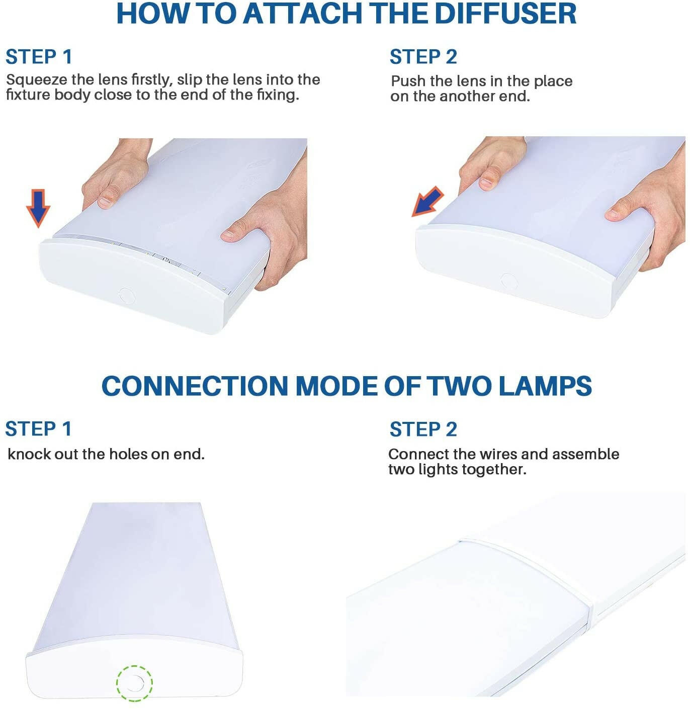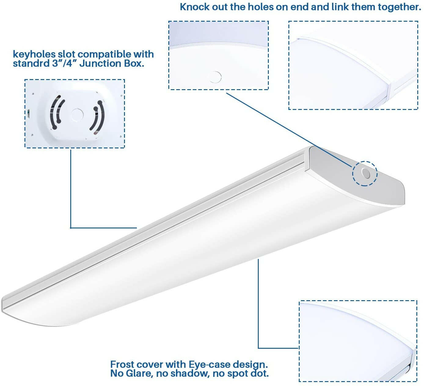 DURABLE - These 4ft linkable LED shop lights are made from high efficiency led technology, and high quality drivers with stable performance. You won't ever have to replace the LED strips. Durable frosted covers provide soft, comfortable light and uniform illumination. No glare, No dazzle, No spot dot.