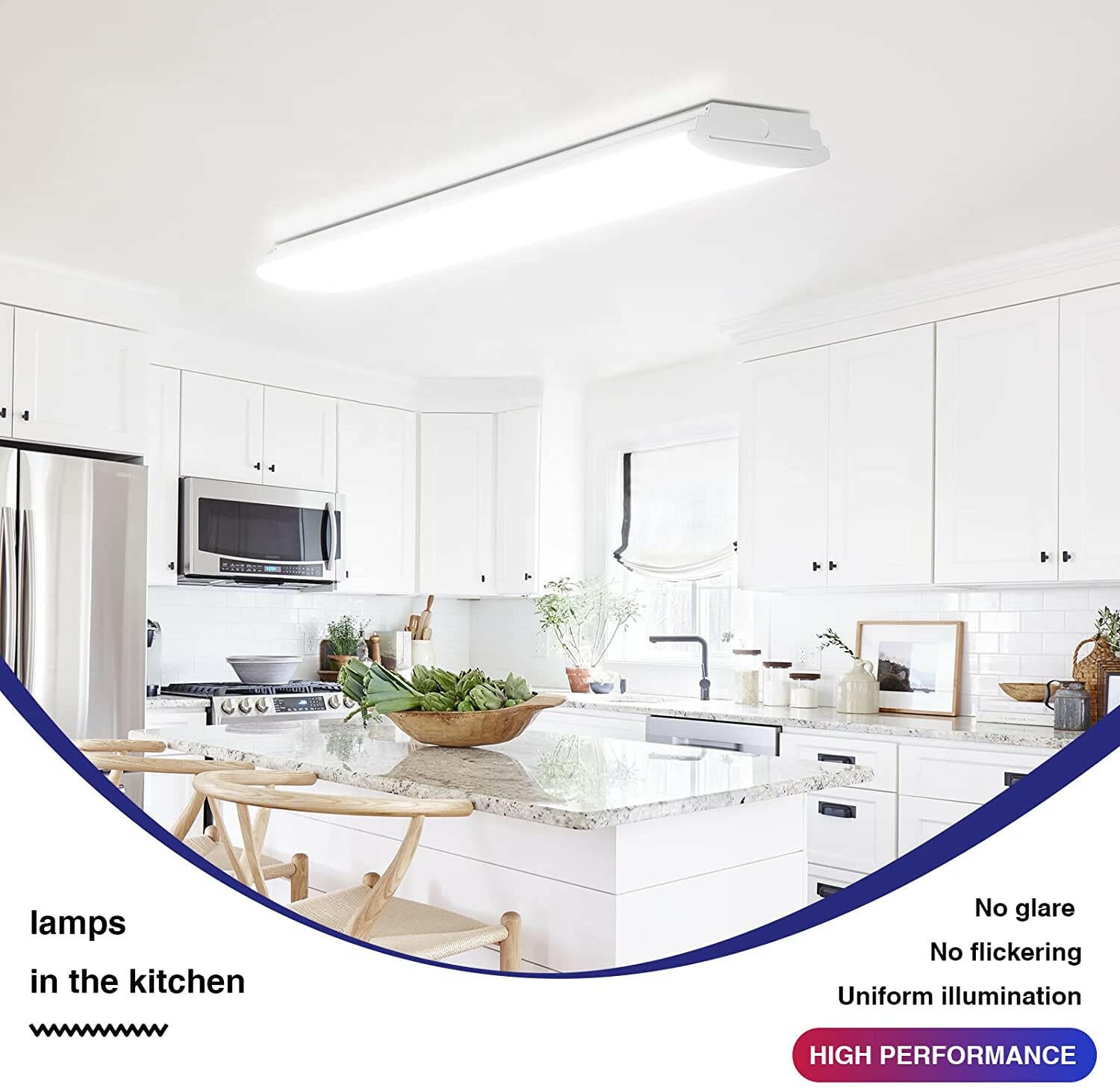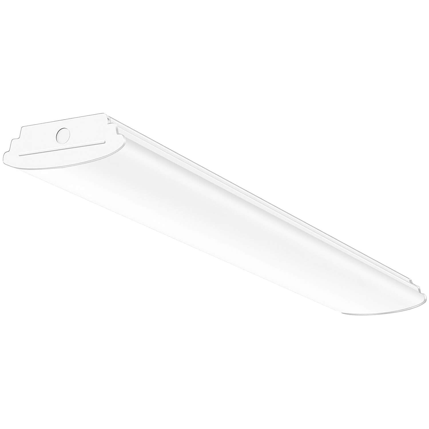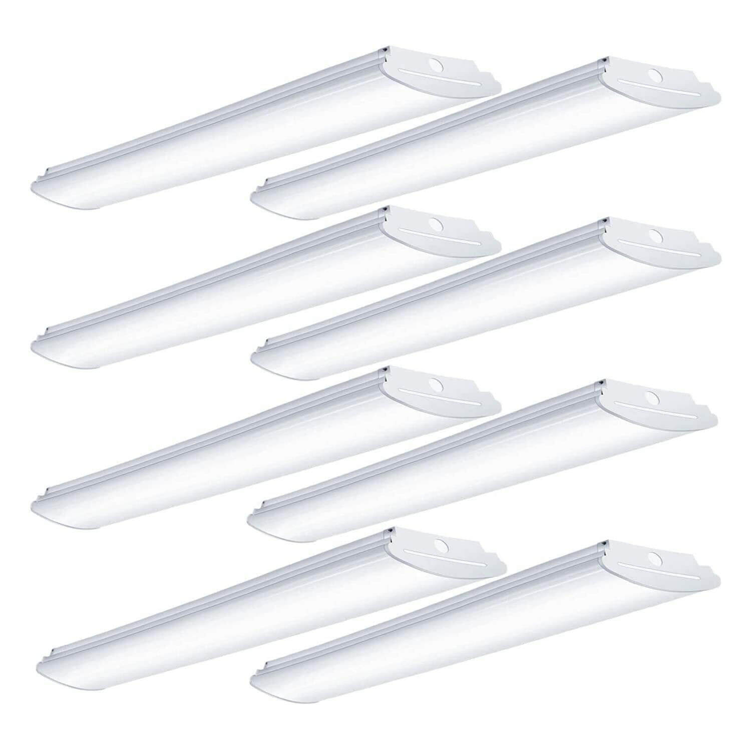 DURABLE - There are two LED strips inside each fixture. No extra bulbs required. These garage LED ceiling lights are made from high quality materials, and use constant current drivers with high precision and high efficiency. Durable frosted cover provides soft and comfortable light. No glare, No dazzle, No spot dot, uniform illumination.