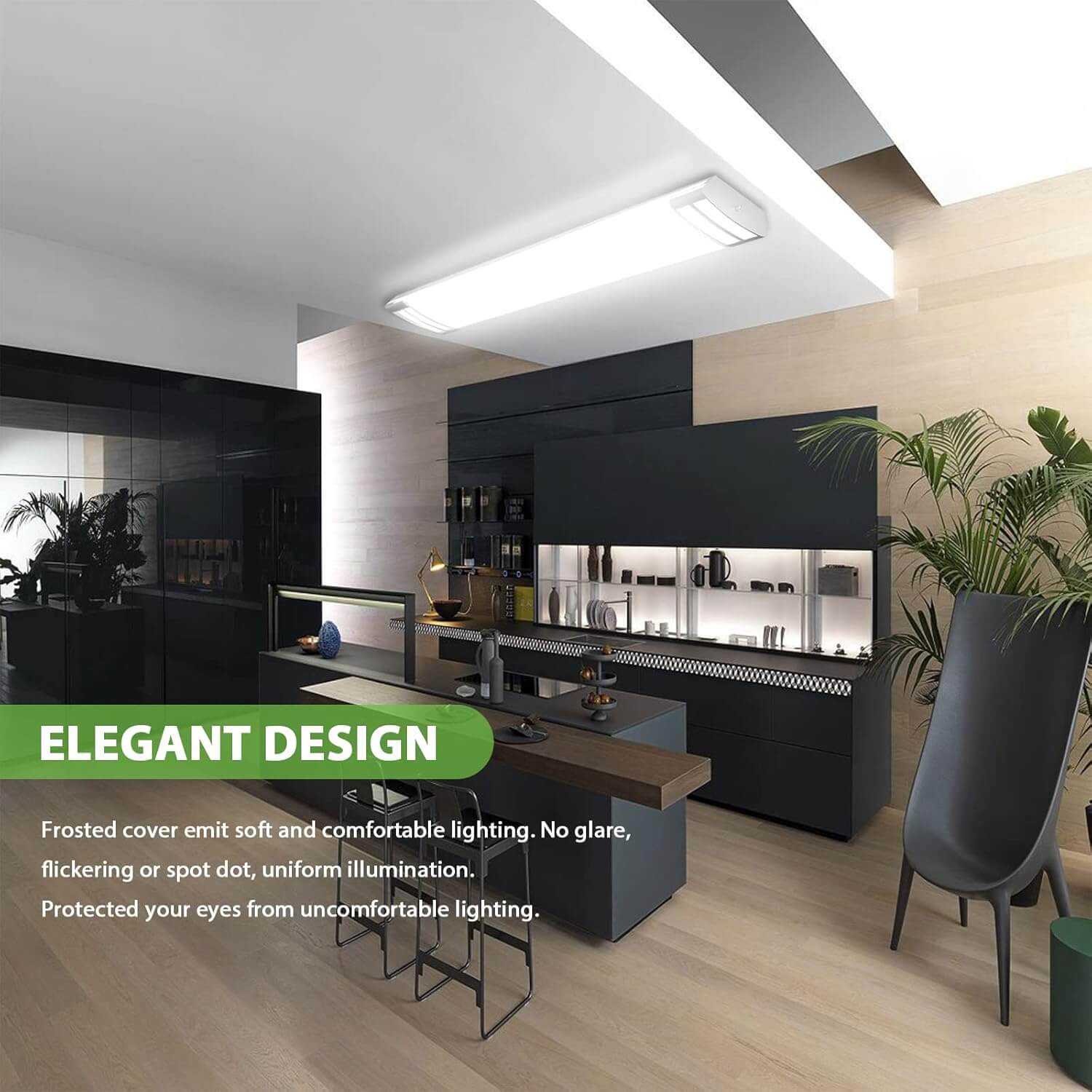 ELEGANT DESIGN: The 4ft led kitchen light with decorative end caps, frosted cover emit soft and comfortable lighting. No glare, flickering or spot dot, uniform illumination. Protect your eyes from uncomfortable lighting.