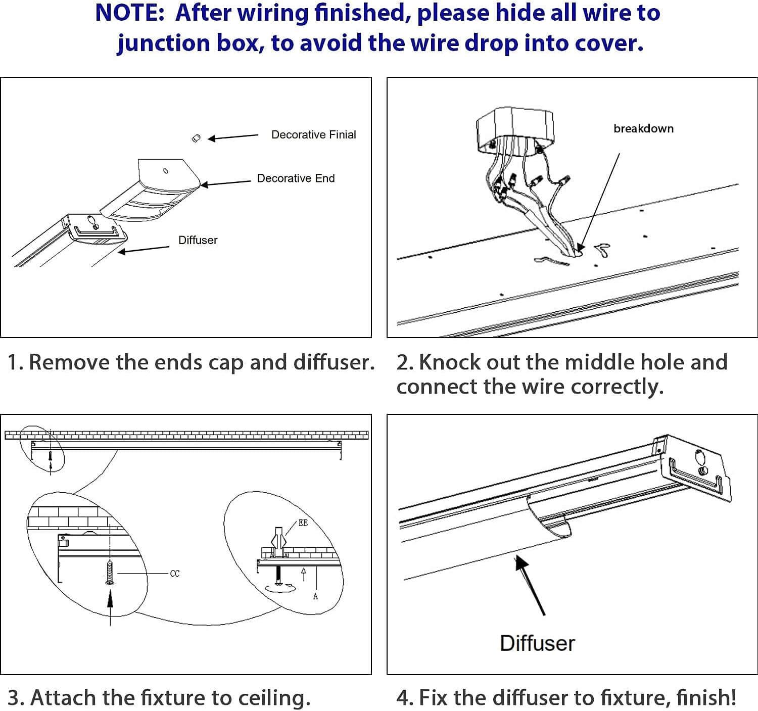HASSLE-FREE INSTALLATION: Attach fixture to ceiling, connect wire correctly. Come with the user manual and mounting hardware for fast and easy installation. Antlux 4 foot led light is the best choice for kitchen, laundry rooms, closets, living rooms, attics, bedrooms, foyers, offices, basements, storage rooms, garages, and hallways.