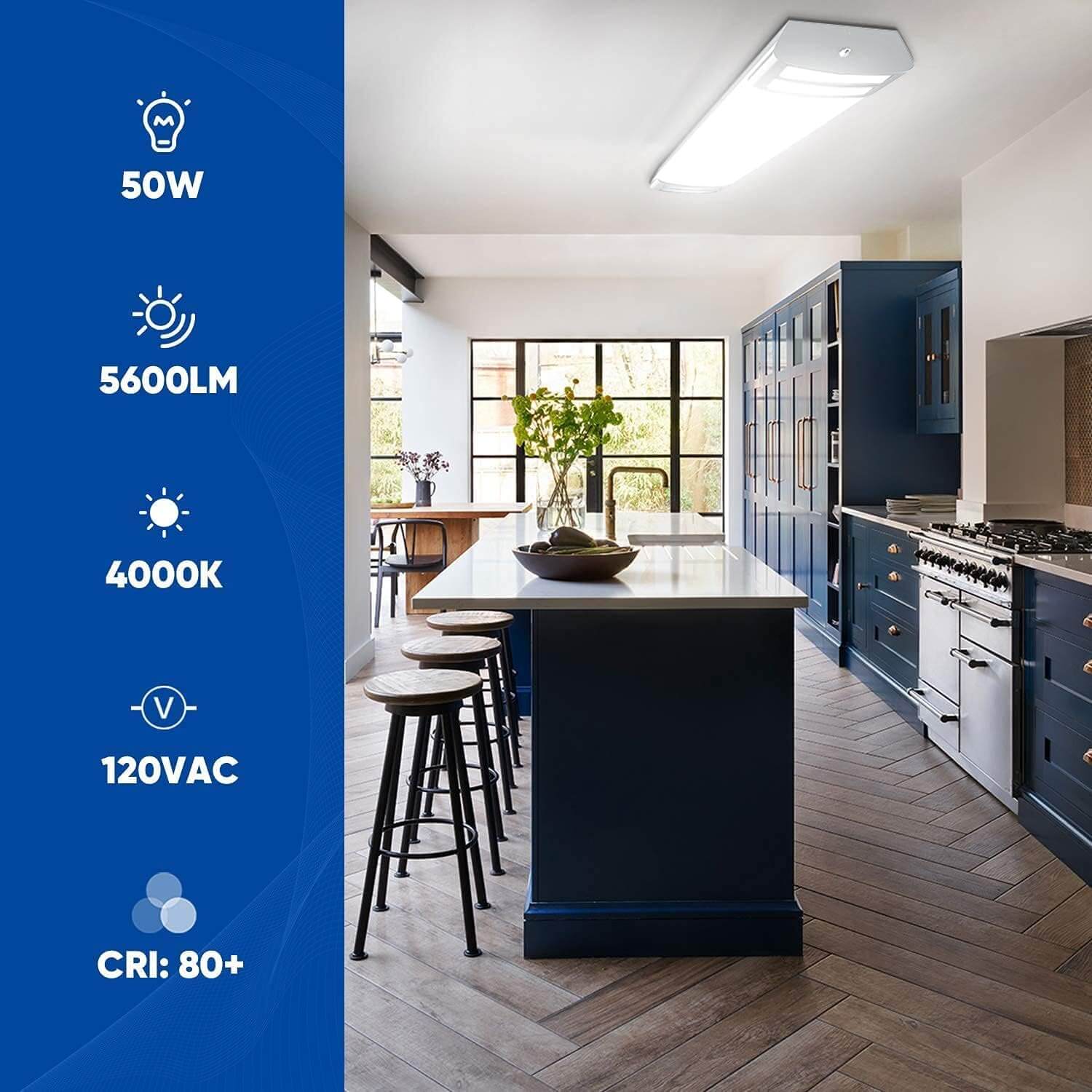 HIGH PERFORMANCE: High quality of AntLux kitchen ceiling lighting provides 5600 lumens, output at 50 watts, 4000K/5000K, energy saving and reduce 75% electri bill every month. Provides 50,000+ hrs worry-free operation.